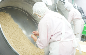 From the peanuts, we strictly select the high-quality beans and use them as ingredients. We carefully check the quality of producers in production areas by regularly visiting them to investigate their quality and offer instruction.